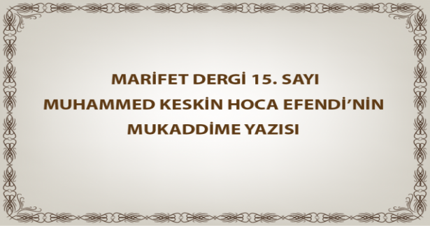 Marifet Derneği Başkanı Muhammed KESKİN Hocaefendi'nin, 15. sayısı yayınlanan Marifet dergisindeki mukaddime yazısırnrnrnrnMukaddimernrnRahmân ve Rahîm olan Allah’ın adıyla...rnrnAlemlerin Rabbi olan Allah-u Teâlâ’ya hamd, Rasûlüllah (Sallallahu Aleyhi ve Sellem) ve onun al-u ashabına salat-u selam olsun.rnrn rnrnAllah-u Teâlâ Hazretleri şöyle buyurmuştur:rnrn rnrnيَا أَيُّهَا الَّذِينَ آمَنُوا اتَّقُوا اللَه وَكُونُوا مَعَ الصَّادِقِينَrnrn rnrn“Ey iman etmiş olan kimseler! (Râzı olmadığı şeylere yaklaşma konusunda) Allâh’tan hakkıyla sakının ve (hem imanda, hem ahde vefada, özü sözü doğru olan) sâdık kimselerle (bedenen ve rûhen, maddeten ve manen) beraber olun.” (Tevbe:119)rnrnAllah’ın sadık kulları ile beraberlik ruhi ve bedeni olmak üzere iki kısımdır. Ruhi beraberlik menşei sevgi olan rabıta ile olur. Bedeni beraberlik ise mesafeleri aşmakla olur. İmam-ı rabbanî Hazretlerinin buyurduğu gibi; “Evet! Bedenlerin yakınlığının kalplerin yakınlığında çok büyük tesiri vardır. Bundan dolayı hiçbir veli sahabî mertebesine ulaşamaz.”rnrnEfendi Hazretlerinin hizmetkârları olarak bizler de tarikat ihvanımızın ve diğer Müslümanların Efendi Hazretlerinin o yüksek maneviyatından istifadelerini artırabilmek için toplu görüşmeler yapmaya çalışmaktayız.rnrnUludağ Hüseyinalan köyünde tertib ettiğimiz ve onbinlerce Müslümanın iştirak ettiği o muhteşem görüşmelere imkan nisbetince Çavuşbaşı’nda da devam etmekteyiz. Görüşme günlerini ise Efendi Hazretlerinin müsait durumuna ve havanın güneşli ve sıcak zamanına denk getirmeye çalışmaktayız.rnrnMuhtereme Hacı Annemizin uygun görmesiyle görüşmelerde, erkeklere nazaran daha az imkan bulabilen (çoğu kere imkan bulamayan) hanım kardeşlerimize öncelik tanınmıştır. Birkaç gün evvel haber verildiğinde ne Çavuşbaşı-Çekmeköy, ne de köprü trafiğinin kaldıramayacağı kalabalıkların toplandığını tecrübe ettiğimiz için umumiyetle bir gece evvel haber vermeyi tercih etmekteyiz.rnrnMevlana Celaleddin-i Rumî’nin buyurduğu gibi:rnrn rnrnيَکْ زَماَنِي صُ�ْبَتيِ باَ اَوْلِياَ بِهْتَرْ اَزْ صَدْ ساَلْ طاَعَتْ بیِ رِياَrnrn rnrn“Allah dostlarıyla bir an beraber olmak riyasız yüz sene ibadetten üstündür.” İşte bu beraberlik elbette her hayra tercih edilir.rnrnŞah-ı Nakşibend Hazretleri “Bizim sükûtumuzdan istifade edemeyen kelâmımızdan hiç istifade edemez.” Lahûtî bir sükût üzere cereyan eden bu ziyaretleri bu kelamın ışığında anlamak, değerlendirmek ve kıymetini bilmek lazımdır. Ne Mutlu! Her türlü meşguliyetlerini bırakarak o nurlu ve mübarek simaya bakmayı tercih eden ve o kutlu cemaate iltihak edenlere! rnrn2008 yazında sultanımızı ziyarete gelen bir kimse Efendi Hazretlerine; “Kadınlara vaaz edecek yaşlı erkek hocalardan birini tayin etseniz.” dediğinde Efendi Hazretleri; “Ben yaparım.” buyurmuşlardı. İşte hanım kardeşlerimiz için Çavuşbaşı’nda vuku bulan bu büyük görüşmelerin ilkinin Pazartesi gününe denk gelmiş olması belki de bu hikmetli sözün tezahürü olmuştur. rnrnBu muhteşem manzaralar karşısında akla şu gelmektedir: Gerçekten bu asırda böyle bir irşadı kim yapabilmiştir. Öyle ya onbinlerce insan (bir gece evvel haber verilmesine rağmen) nasıl toplanabilmiştir. rnrnHele ki bunların birçoğunun hoca ve talebelerden oluştuğu hem de sadece İstanbul’un bir yakasının davet edildiği düşünülürse Efendi Hazretlerinin ne kadar büyük bir manevi tasarrufa sahip olduğu Allah için ne kadar sevildiği ve ona Asrın Müceddidi diyenlerin ne kadar haklı olduğu gün gibi ortaya çıkmaktadır.rnrn rnrnماَ ضَرَّ شَمْسَ الضُّ�َي فِي الْاُفُقِ طاَلِعَةً اَنْ لاَيَرَي ضَوْئَهاَ مَنْ لَيْسَ ذاَ بَصَرٍrnrn rnrn“Ufukta parlayan kuşluk güneşine zarar vermez. Kör olanın onun ışığını görmemesi”rnrnBu arada Efendi Hazretlerini tanıtım maksadıyla bazı eserlerini farklı lisanlara tercüme ettirmekteyiz.rnrnEfendi Hazretlerinin Fatiha Tefsirini ve muhtasar hayatını bu gayeyle İngilizceye tercüme ettirdikrnrnve önümüzdeki günlerde inşaallah yayınlayacağız.rnrnMevla Teâlâ cümlemizi makbul, merzî ve meşkûr hizmetlere muvaffak eylesin. Âmîn…rnrn Muhammed KESKİN rnrn